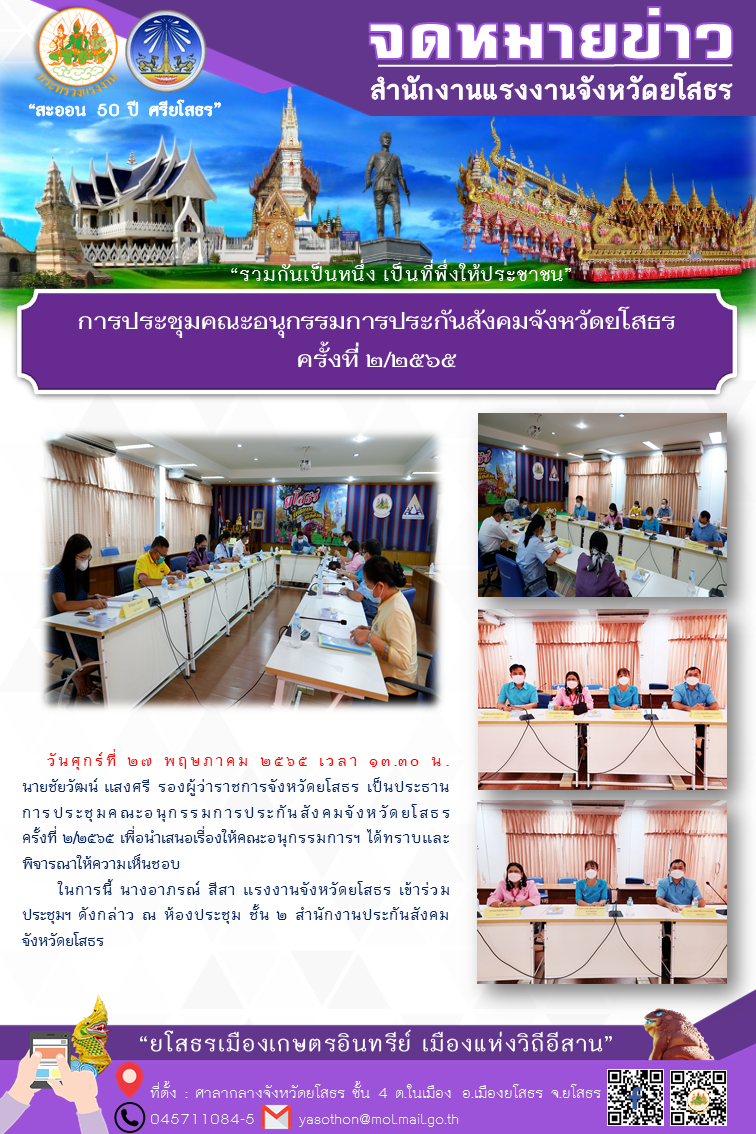 การประชุมคณะอนุกรรมการประกันสังคมจังหวัดยโสธร ครั้งที่ 2/2565