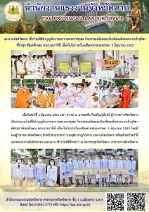 แรงงานจังหวัดตาก เข้าร่วมพิธีเจริญพระพุทธมนต์สมโภชพระพุทธรูปประจำจังหวัดตาก เฉลิมพระเกียรติสมเด็จพระนางเจ้าสุทิดา พัชรสุธาพิมลลักษณ พระบรมราชินี เนื่องในโอกาสวันเฉลิมพระชนมพรรษา 3 มิถุนายน 2565