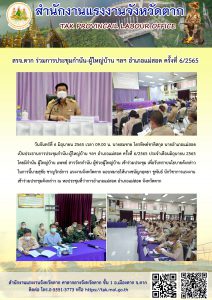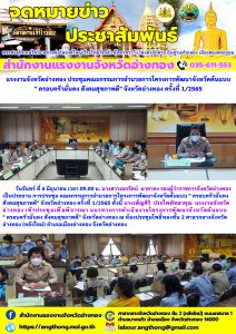 แรงงานจังหวัดอ่างทอง ประชุมคณะกรรมการอำนวยการโครงการพัฒนาจังหวัดต้นแบบ ”ครอบครัวมั่นคง สังคมสุขภาพดี” จังหวัดอ่างทอง ครั้งที่ 1/2565