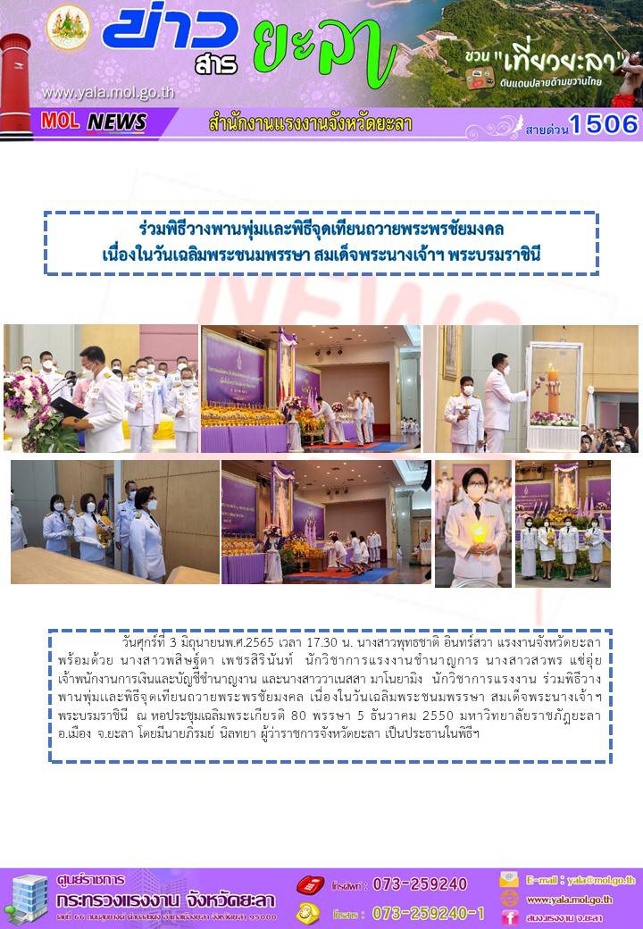 สรจ.ยะลา ร่วมพิธีวางพานพุ่มเเละพิธีจุดเทียนถวายพระพรชัยมงคล เนื่องในโอกาสวันเฉลิมพระชนมพรรษา สมเด็จพระนางเจ้าฯ พระบรมราชินี