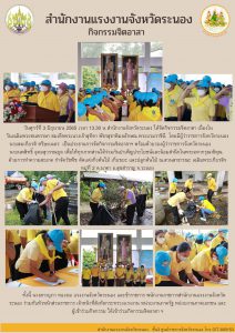 แรงงานจังหวัดนราธิวาส นำทีมเจ้าหน้าที่ร่วมกิจกรรมจิตอาสาบำเพ็ญสาธารณประโยชน์ “เราทำความดี ด้วยหัวใจ”