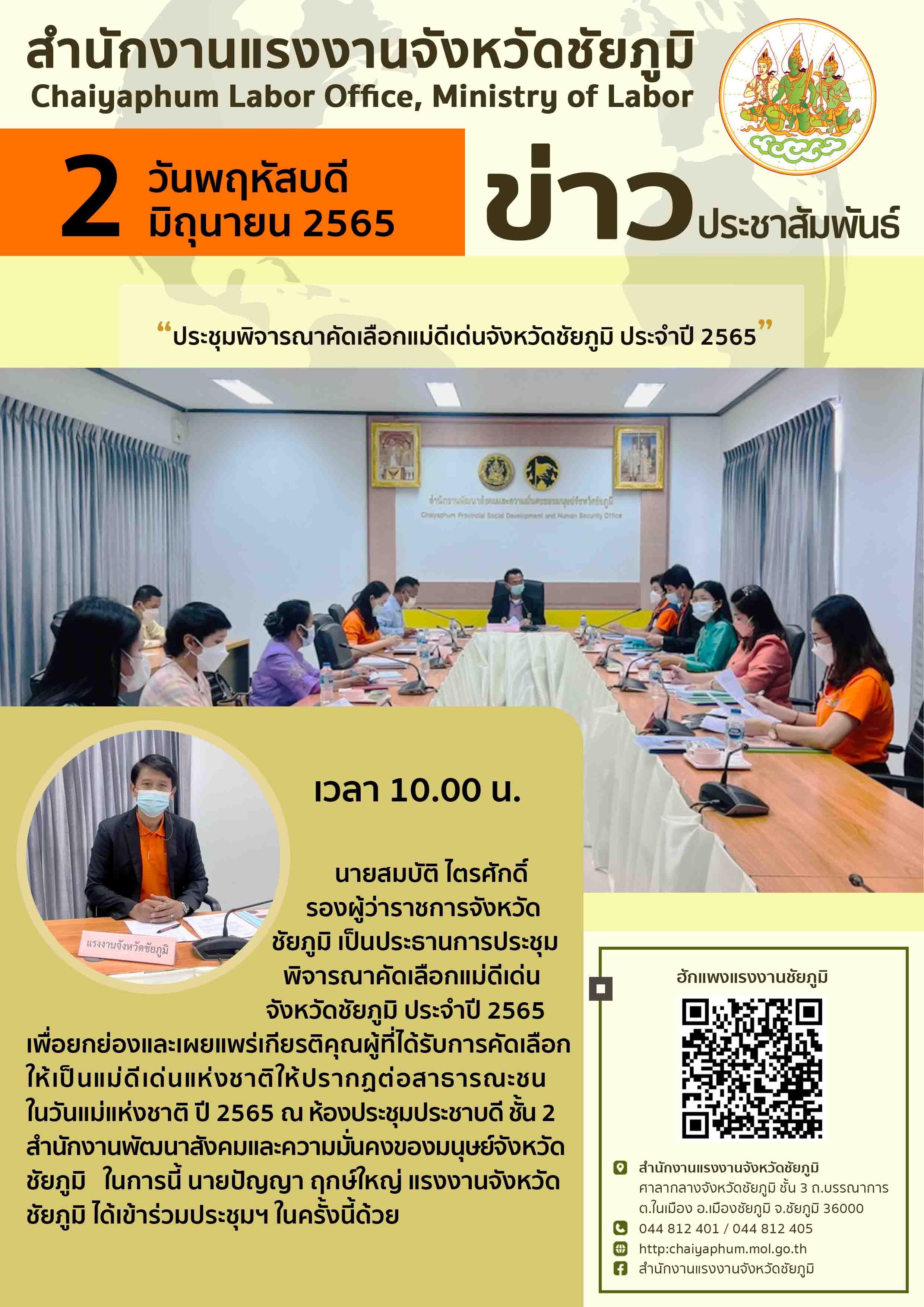 รองผู้ว่าราชการจังหวัดชัยภูมิ เป็นประธานการประชุมพิจารณาคัดเลือกแม่ดีเด่นจังหวัดชัยภูมิ ประจำปี 2565