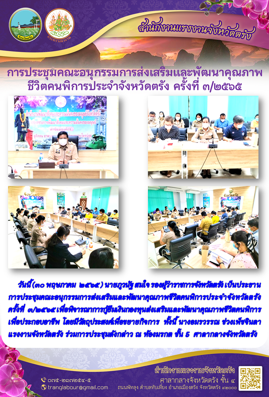 แรงงานจังหวัดตรัง ร่วมการประชุมคณะอนุกรรมการส่งเสริมและพัฒนาคุณภาพชีวิตคนพิการประจำจังหวัดตรัง