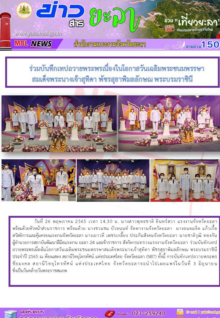 แรงงานจังหวัดยะลา ร่วมบันทึกเทปถวายพระพรเนื่องในโอกาสวันเฉลิมพระชนมพรรษา สมเด็จพระนางเจ้าสุทิดา พัชรสุธาพิมลลักษณ พระบรมราชินี