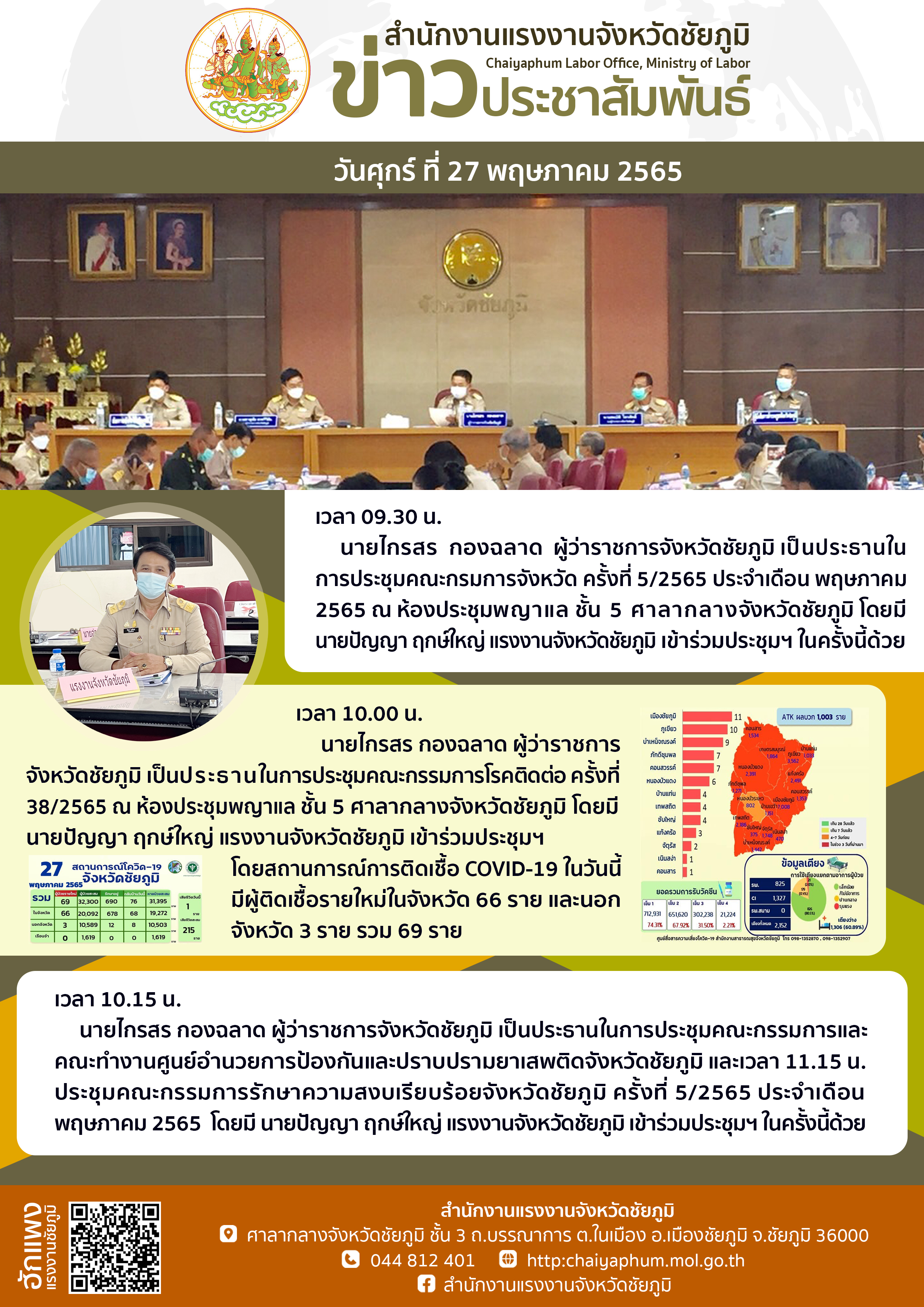 ข่าวประชาสัมพันธ์ของสำนักงานแรงงานจังหวัดชัยภูมิ ประจำวันศุกร์ที่ 27 พฤษภาคม 2565