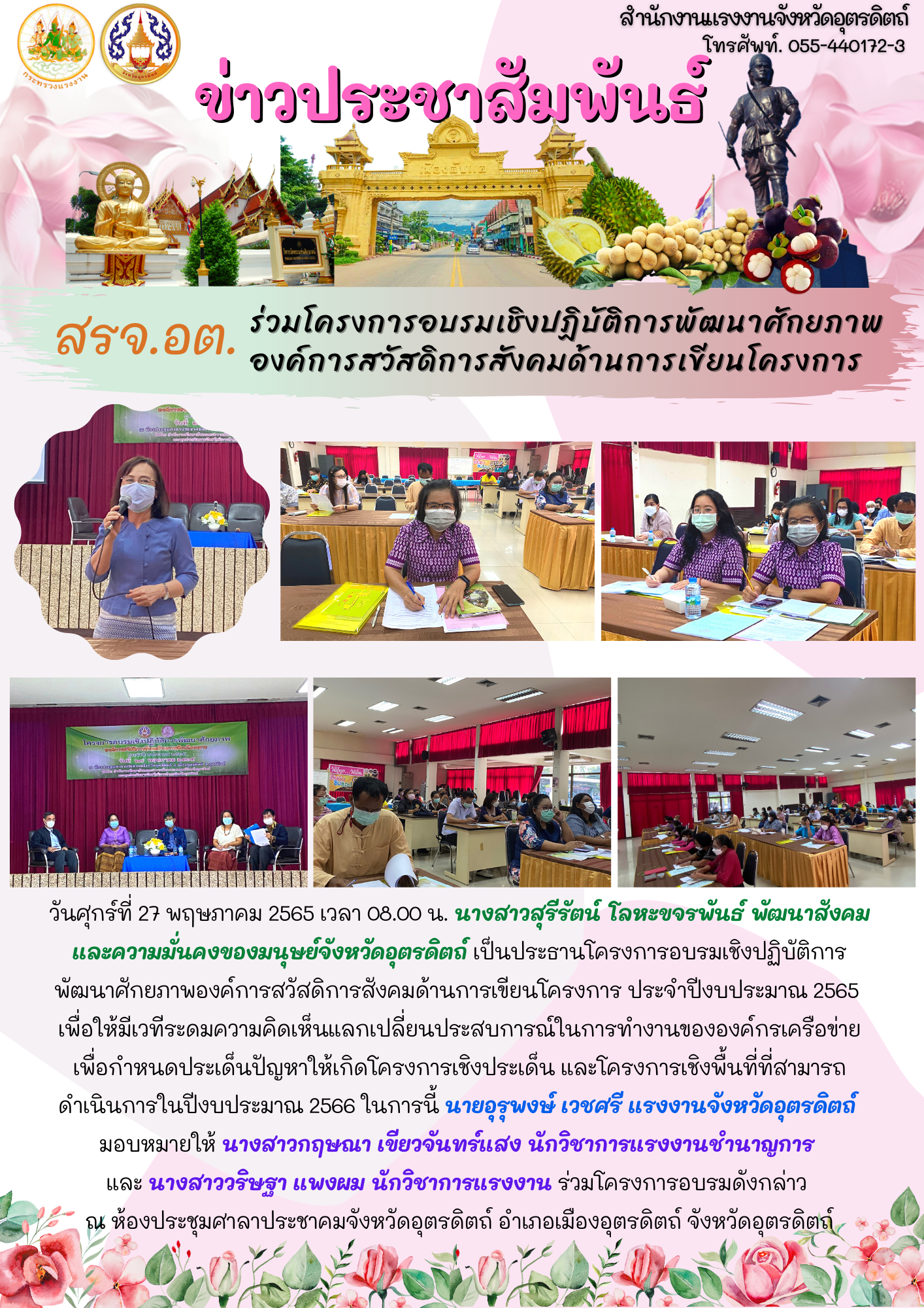 สรจ.อต. ร่วมโครงการอบรมเชิงปฏิบัติการพัฒนาศักยภาพองค์การสวัสดิการสังคมด้านการเขียนโครงการ