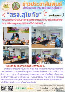 สรจ.สุโขทัย จัดประชุมหัวหน้าส่วนราชการสังกัดกระทรวงแรงงานจังหวัดสุโขทัย