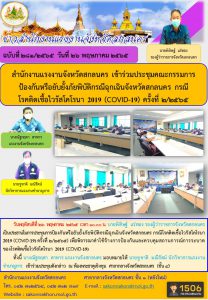 สำนักงานแรงงานจังหวัดสกลนคร เข้าร่วมประชุมคณะกรรมการป้องกันหรือยับยั้งภัยพิบัติกรณีฉุกเฉินจังหวัดสกลนคร กรณีโรคติดเชื้อไวรัสโคโรนา 2019