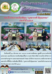 สรจ.นครนายก มอบใบประกาศเกียรติคุณ “บุคลากรดี มีคุณธรรม” ประจำปี 2565
