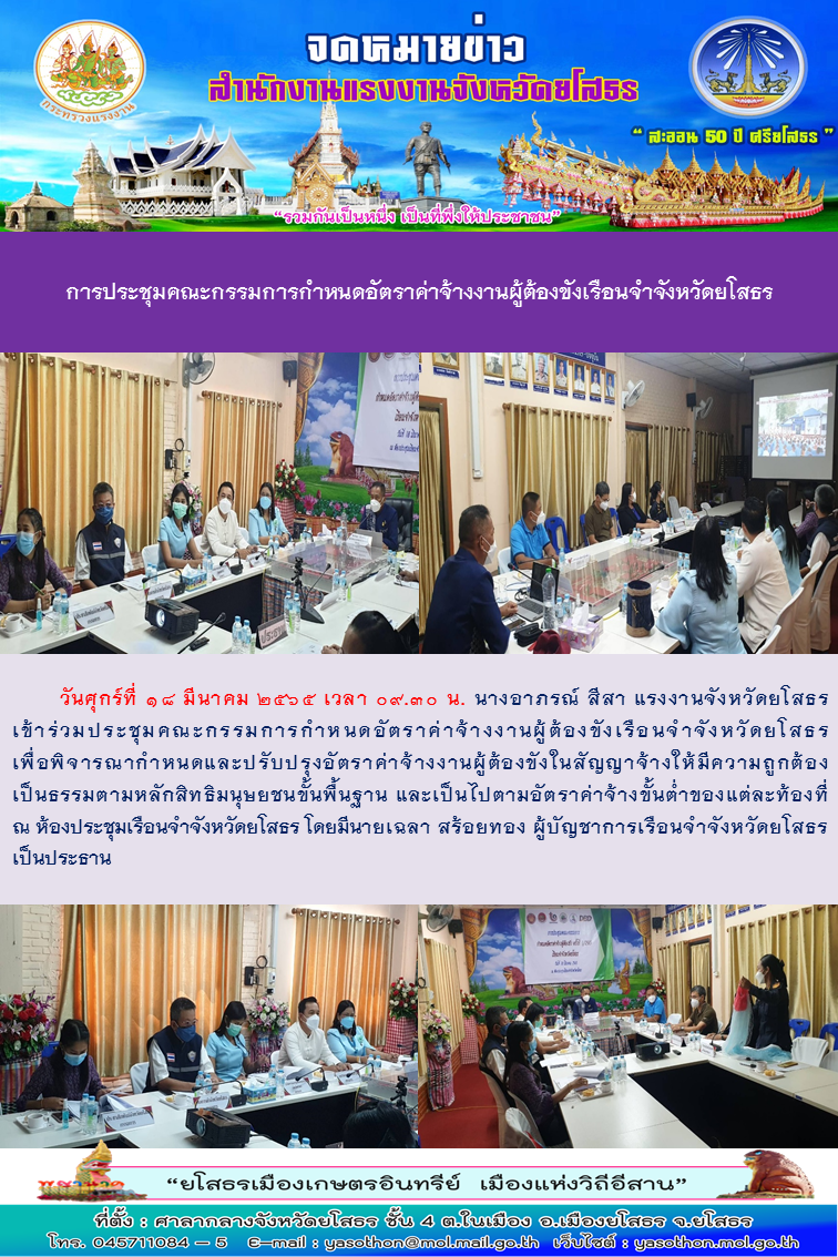 การประชุมคณะกรรมการกำหนดอัตราค่าจ้างงานผู้ต้องขังเรือนจำจังหวัดยโสธร