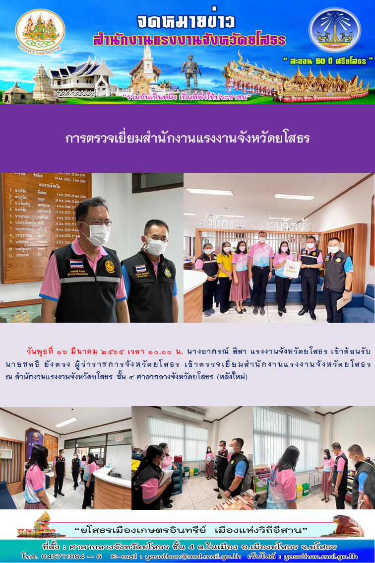 การตรวจเยี่ยมสำนักงานแรงงานจังหวัดยโสธร