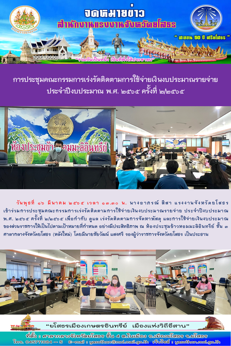 สรจ.ยโสธร ร่วมประชุมคณะกรรมการเร่งรัดติดตามการใช้จ่ายเงินงบประมาณรายจ่าย ประจำปีงบประมาณ พ.ศ. ๒๕๖๕ ครั้งที่ ๒/๒๕๖๕