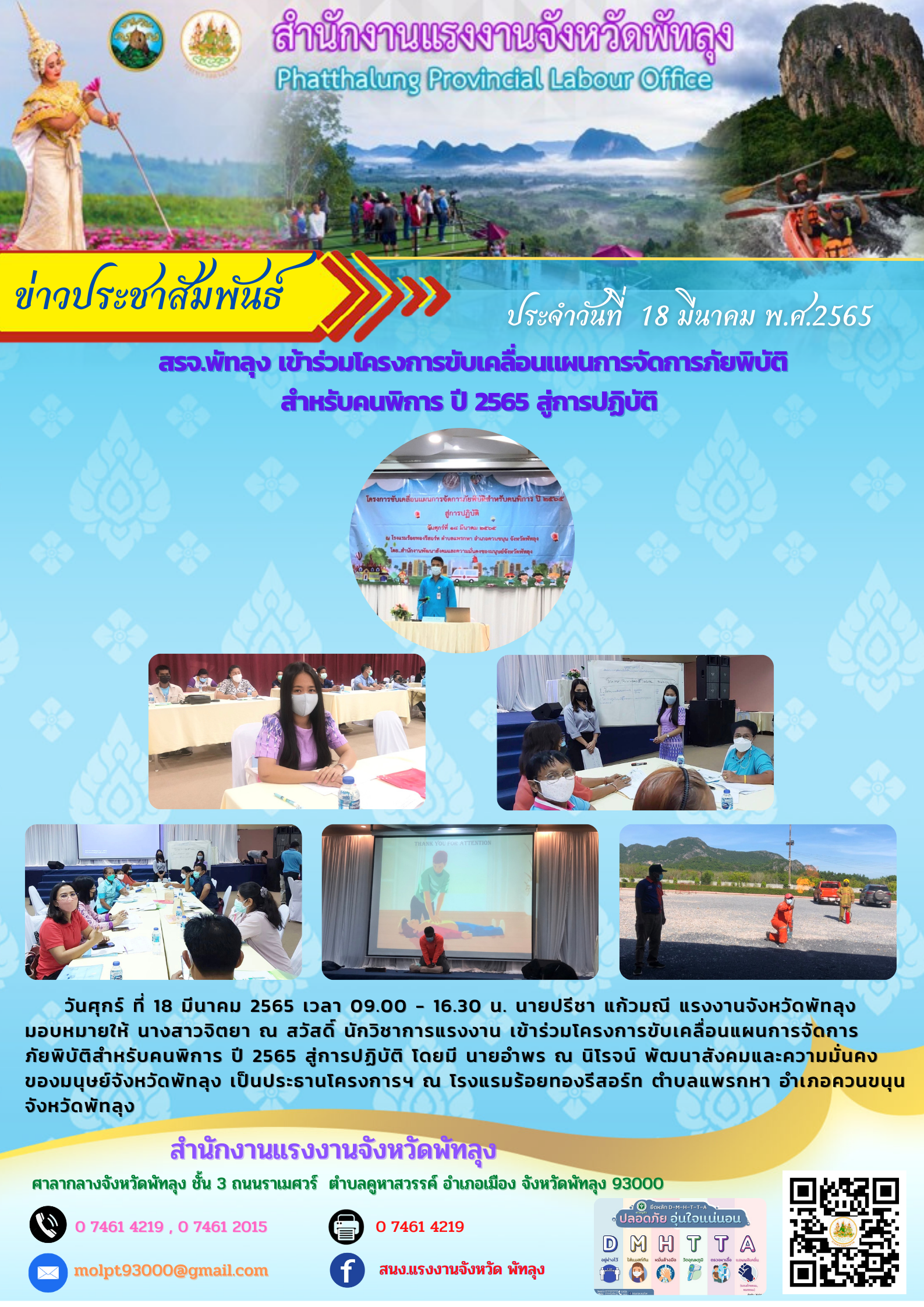 สรจ.พัทลุง เข้าร่วมโครงการขับเคลื่อนแผนการจัดการภัยพิบัติสำหรับคนพิการ ปี 2565 สู่การปฏิบัติ
