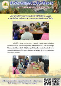 แรงงานจังหวัดตาก มอบหมายเจ้าหน้าที่ ให้คำปรึกษา แนะนำ การขอรับเงินบำเหน็จชราภาพ จากกองทุนประกันภัยแรงงานไต้หวัน