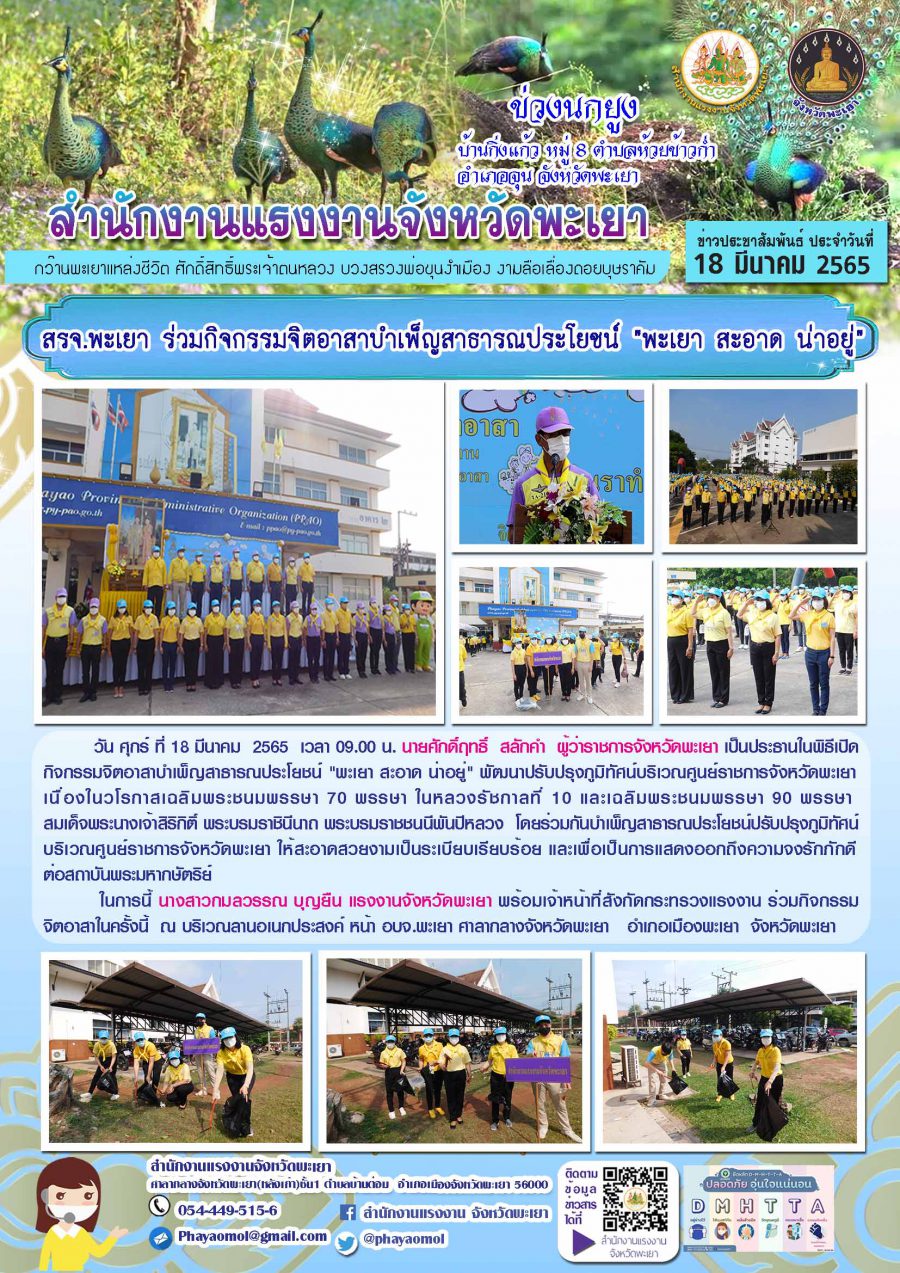 สรจ.พะเยา ร่วมกิจกรรมจิตอาสาบำเพ็ญสาธารณประโยชน์ “พะเยา สะอาด น่าอยู่” พัฒนาปรับปรุงภูมิทัศน์บริเวณศูนย์ราชการจังหวัดพะเยา