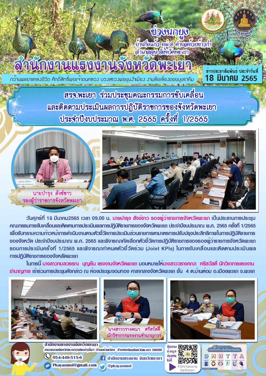 สรจ.พะเยา ร่วมประชุมคณะกรรมการขับเคลื่อนและติดตามประเมินผลการปฏิบัติราชการของจังหวัดพะเยา ประจำปีงบประมาณ พ.ศ. 2565 ครั้งที่ 1/2565