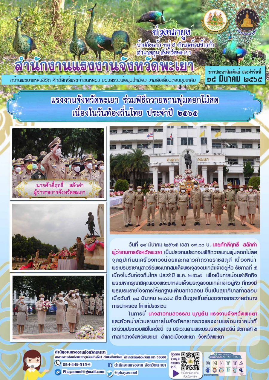 แรงงานจังหวัดพะเยา ร่วมพิธีถวายพานพุ่มดอกไม้สด เนื่องในวันท้องถิ่นไทย ประจำปี ๒๕๖๕