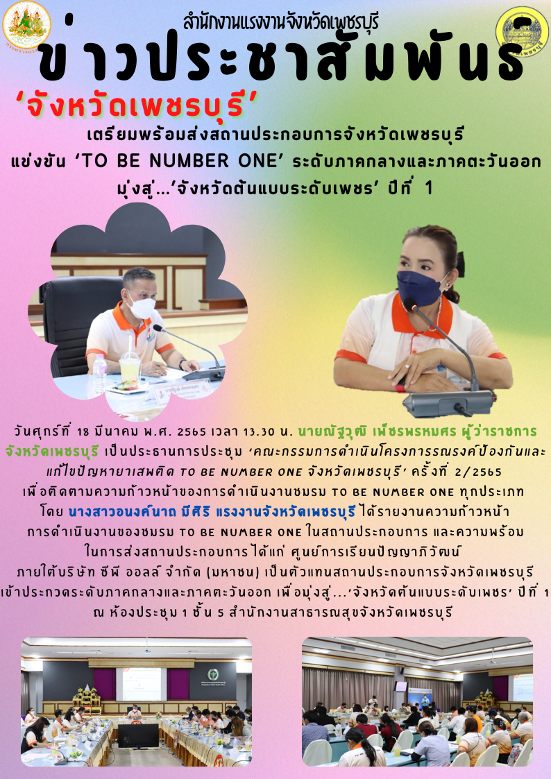 ‘จังหวัดเพชรบุรี’ เตรียมพร้อมส่งสถานประกอบการจังหวัดเพชรบุรี แข่งขัน ‘TO BE NUMBER ONE’ ระดับภาคกลางและภาคตะวันออก มุ่งสู่…’จังหวัดต้นแบบระดับเพชร’ ปีที่ 1