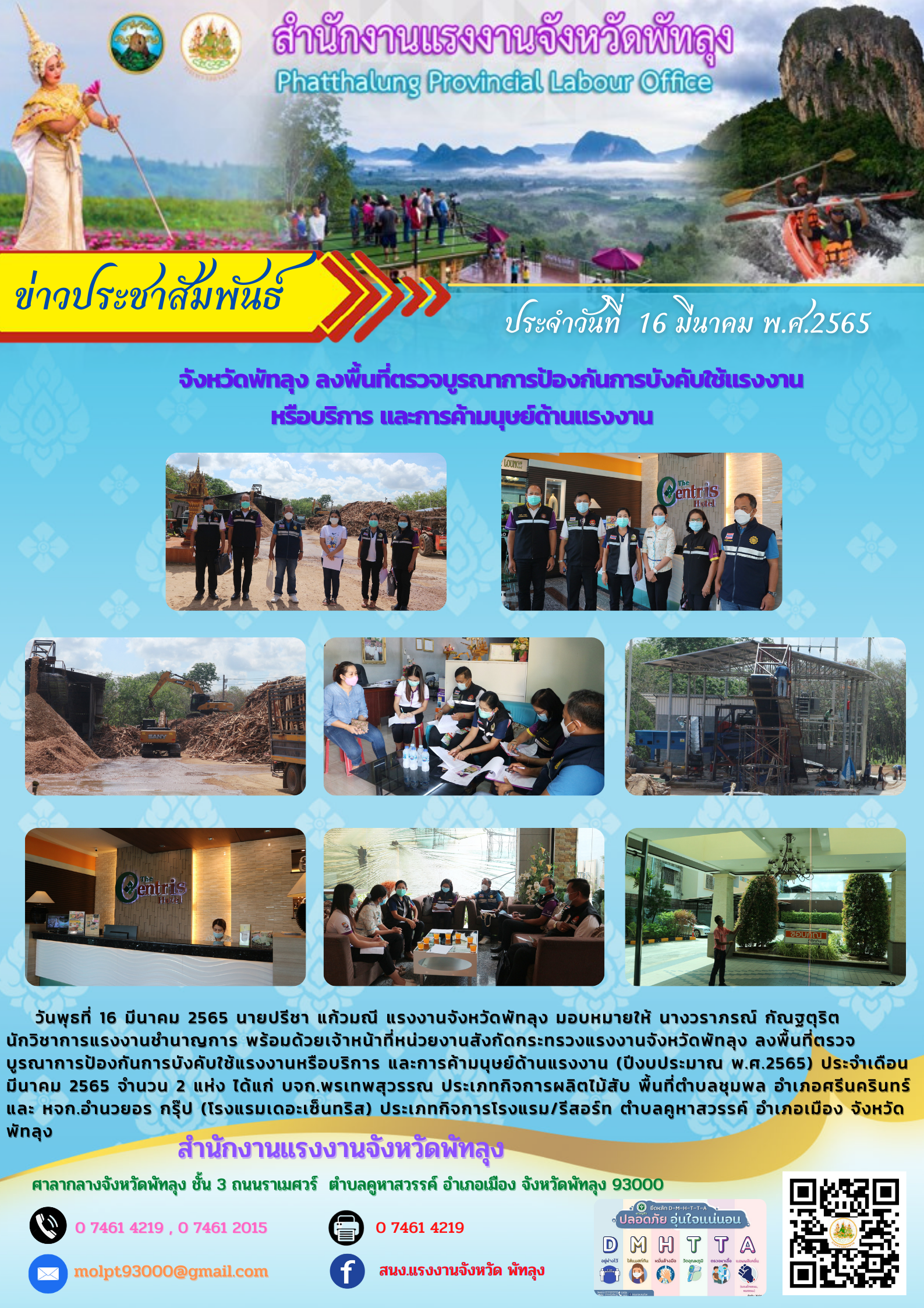 จังหวัดพัทลุงลงพื้นที่ตรวจบูรณาการป้องกันการบังคับใช้แรงงานหรือบริการและการค้ามนุษย์ด้านแรงงาน
