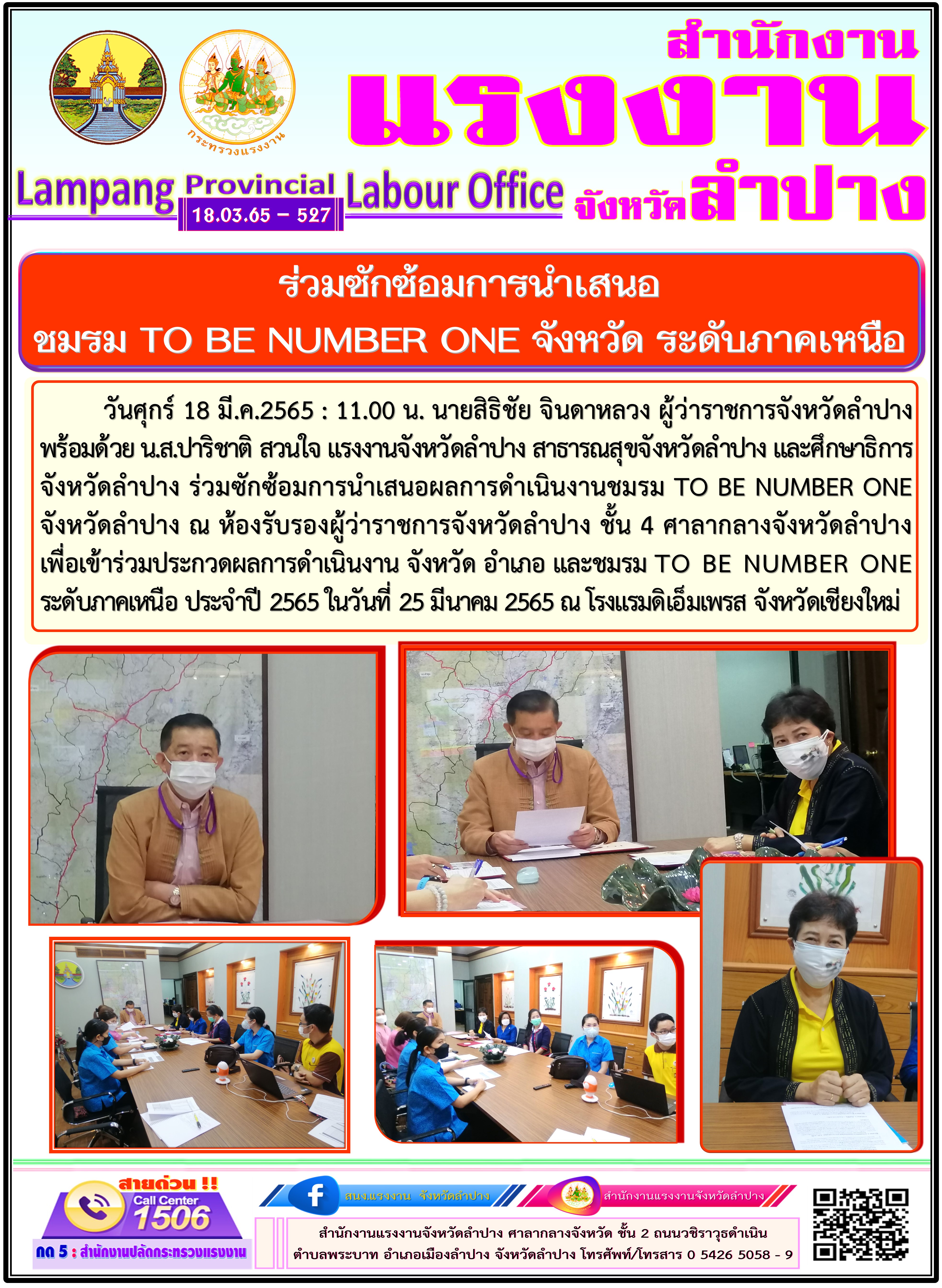 สรจ.ลำปาง ร่วมซักซ้อมการนำเสนอผลการดำเนินงานชมรม TO BE NUMBER ONE จังหวัดลำปาง