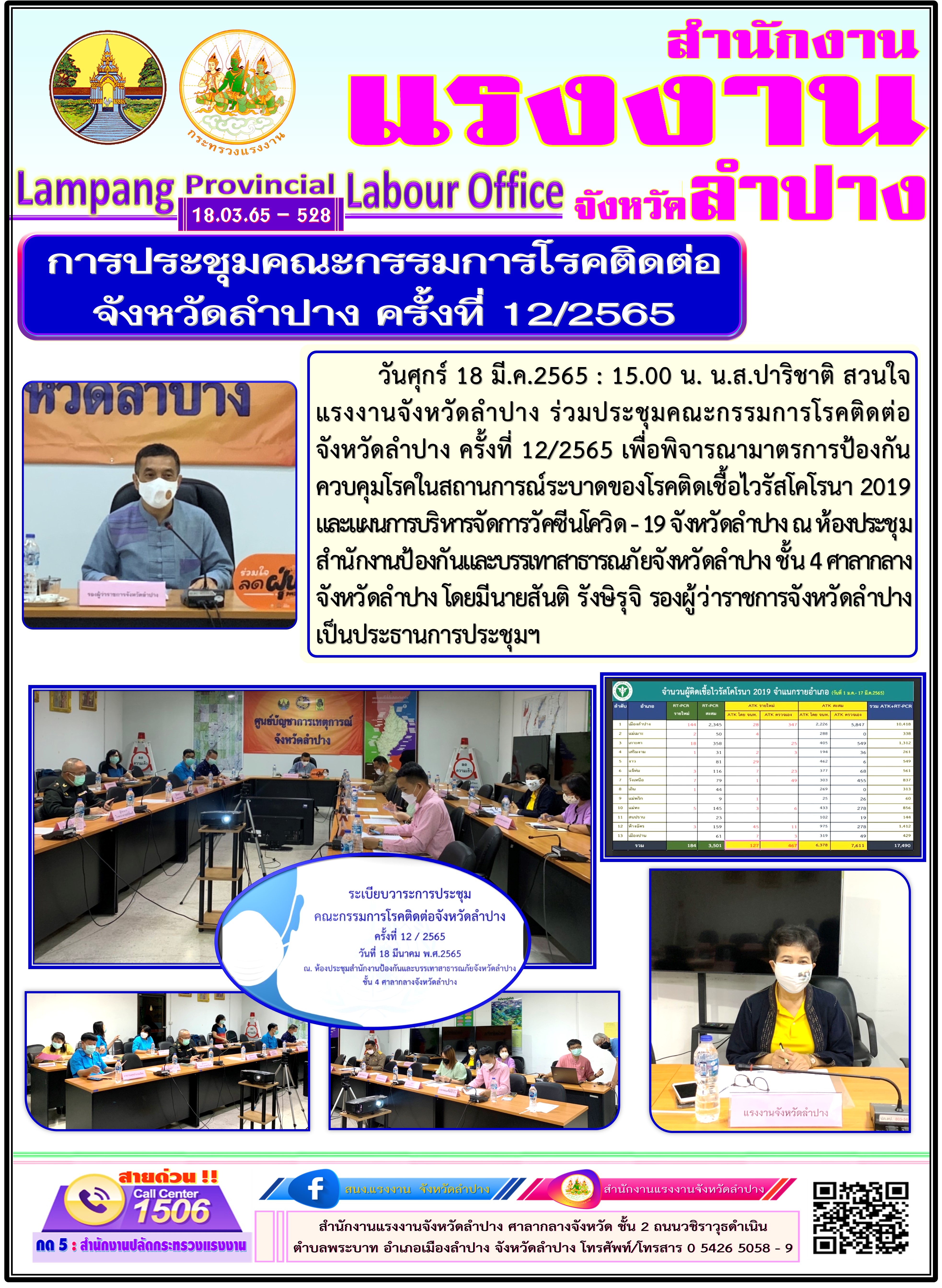 สรจ.ลำปาง ร่วมประชุมคณะกรรมการโรคติดต่อจังหวัดลำปาง ครั้งที่ 12/2565