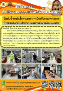 การฉีดพ่นน้ำยาฆ่าเชื้อตามมาตรการป้องกันการแพร่ระบาดโรคติดต่อภายในสำนักงานแรงงานจังหวัดกำแพงเพชร