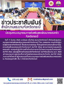 แรงงานจังหวัดกระบี่ร่วมประชุมคณะอนุกรรมการส่งเสริมและพัฒนาครอบครัวจังหวัดกระบี่