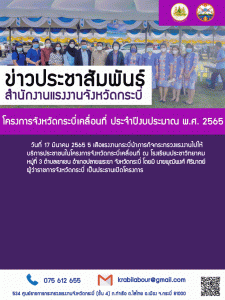 5 เสือแรงงานจังหวัดกระบี่ร่วมโครงการจังหวัดกระบี่เคลื่อนที่ ประจำปีงบประมาณ พ.ศ. 2565