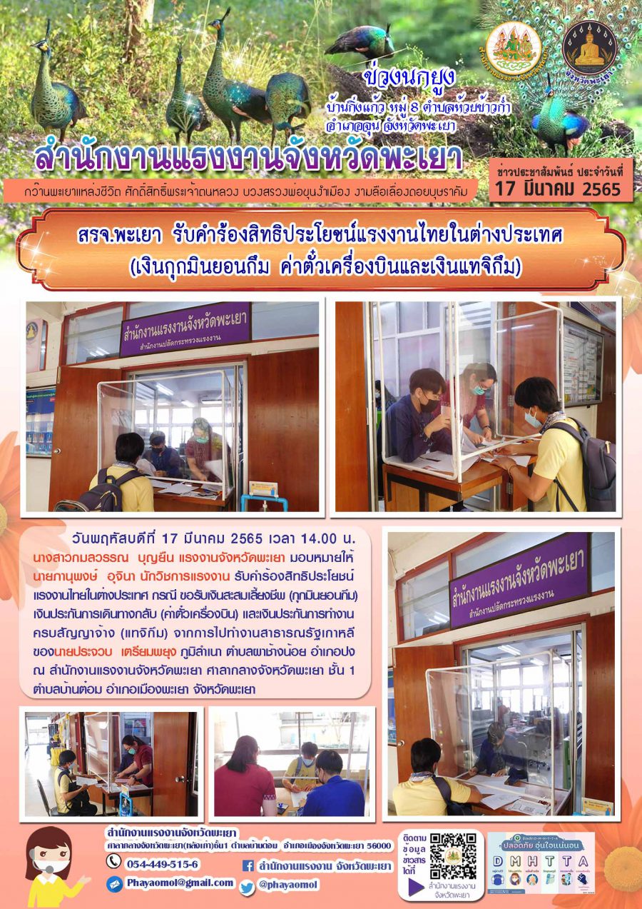 สรจ.พะเยา รับคำร้องสิทธิประโยชน์แรงงานไทยในต่างประเทศ (เงินกุกมินยอนกึม ค่าตั๋วเครื่องบินและเงินแทจิกึม)