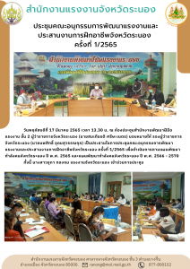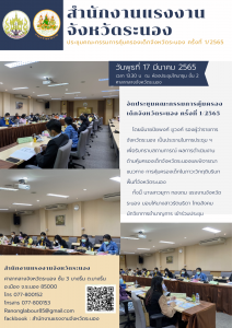 การประชุมคณะอนุกรรมการพัฒนาแรงงานและประสานงานการฝึกอาชีพจังหวัดระนอง ครั้งที่ 1/2565