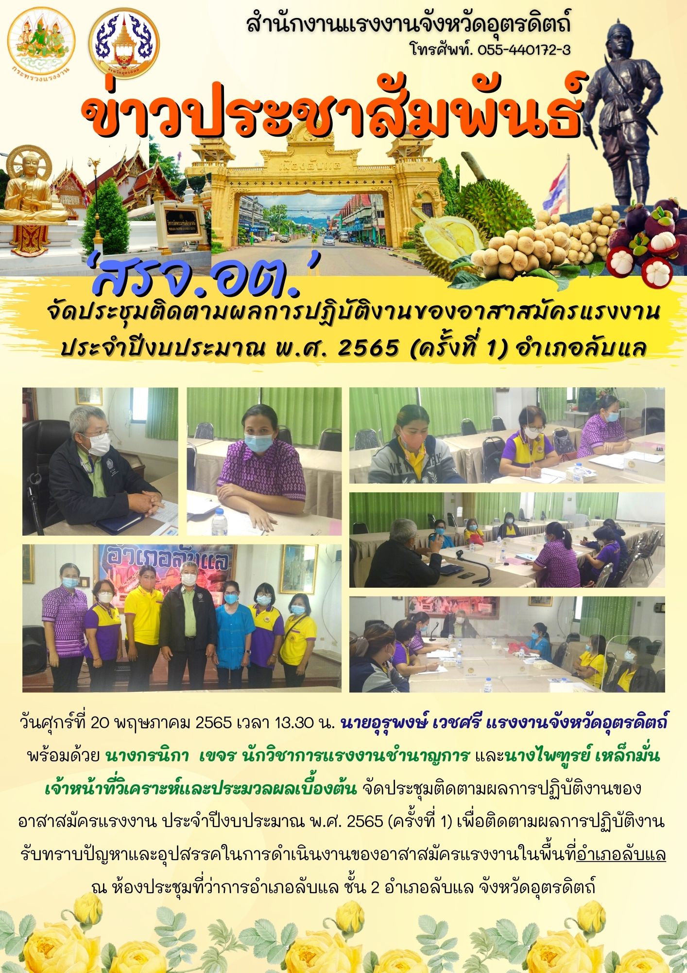 ‘สรจ.อต.’ จัดประชุมติดตามผลการปฏิบัติงานของอาสาสมัครแรงงาน ประจำปีงบประมาณ พ.ศ. 2565 (ครั้งที่ 1) อำเภอลับแล