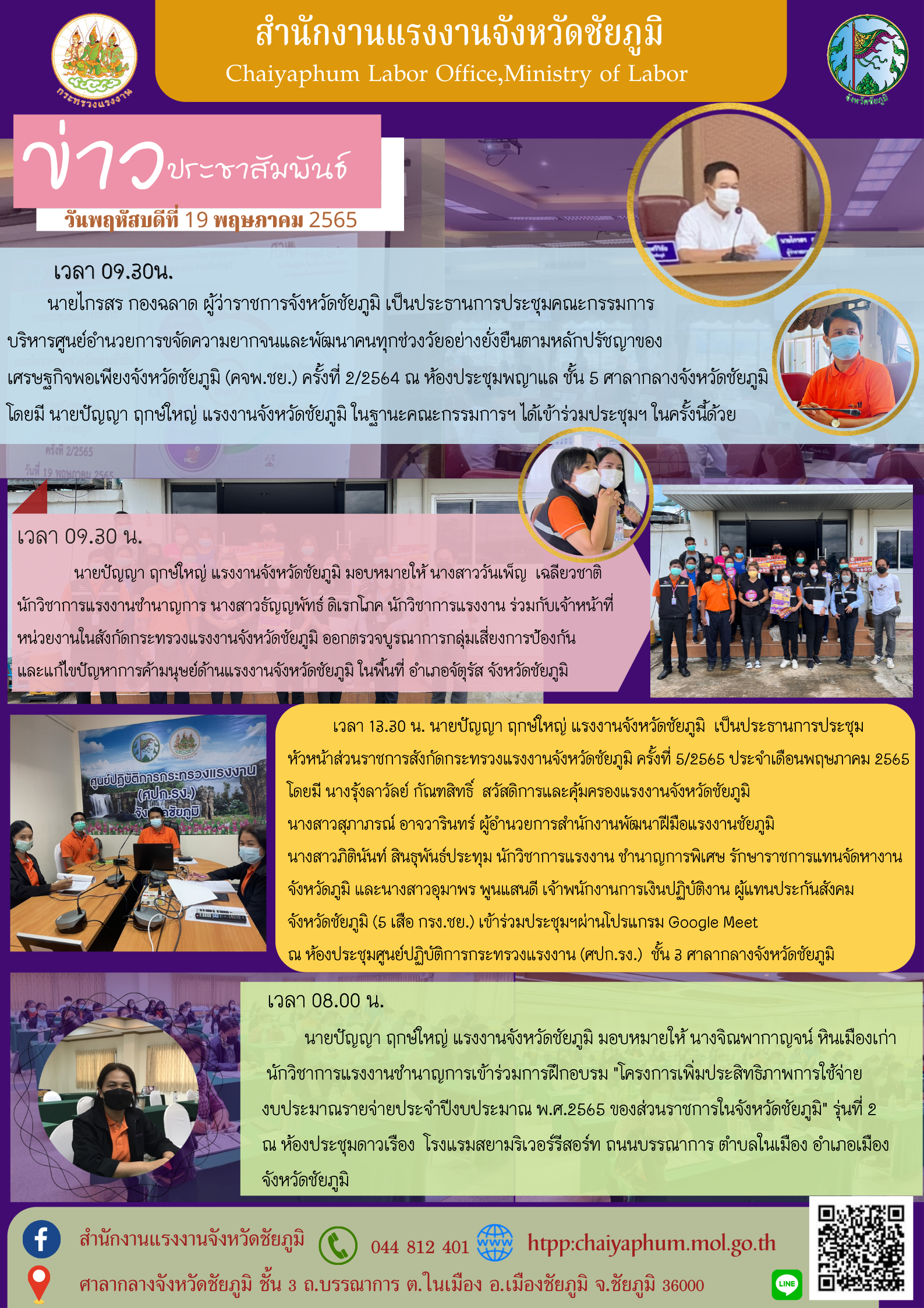ข่าวประชาสัมพันธ์สำนักงานแรงงานจังหวัดชัยภูมิ ประจำวันพฤหัสบดีที่ 19 พฤษภาคม 2565