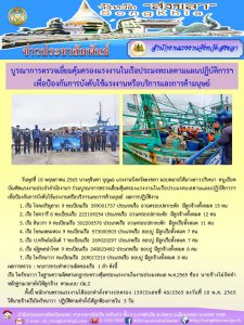 สรจ.สงขลา บูรณาการตรวจเยี่ยมคุ้มครองแรงงานในเรือประมงทะเลตามแผนปฏิบัติการฯ เพื่อป้องกันการบังคับใช้แรงงานหรือบริการ และการค้ามนุษย์