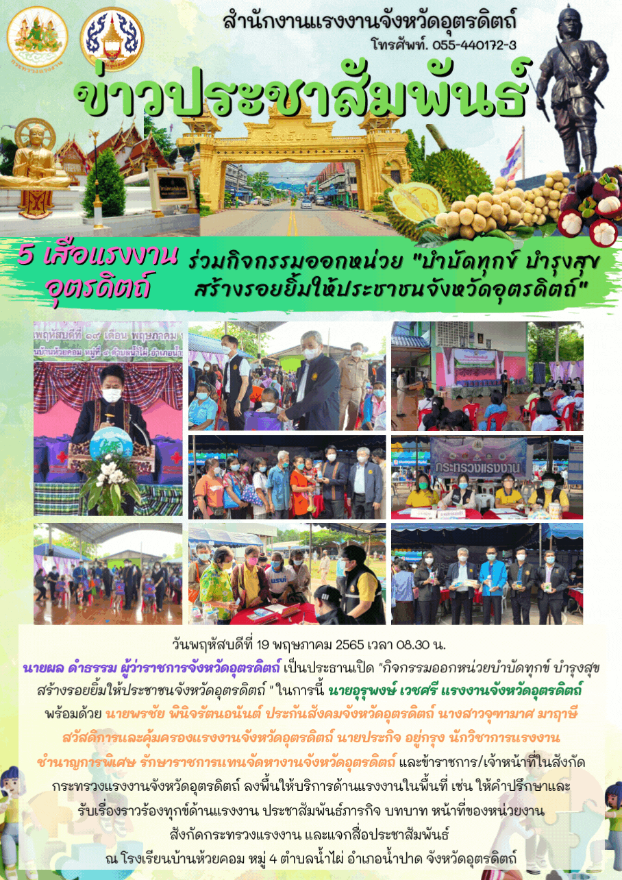 5 เสือแรงงาน ร่วมกิจกรรมออกหน่วย “บำบัดทุกข์ บำรุงสุข สร้างรอยยิ้มให้ประชาชนจังหวัดอุตรดิตถ์”