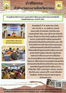 สำนักงานแรงงานจังหวัดนนทบุรี ร่วมประชุมโครงการคลินิกเกษตรเคลื่อนที่ในพระราชานุเคราะห์สมเด็จพระบรมโอรสาธิราช สยามมกุฎราชกุมาร ปีงบประมาณ พ.ศ. 2565 ไตรมาสที่ 2