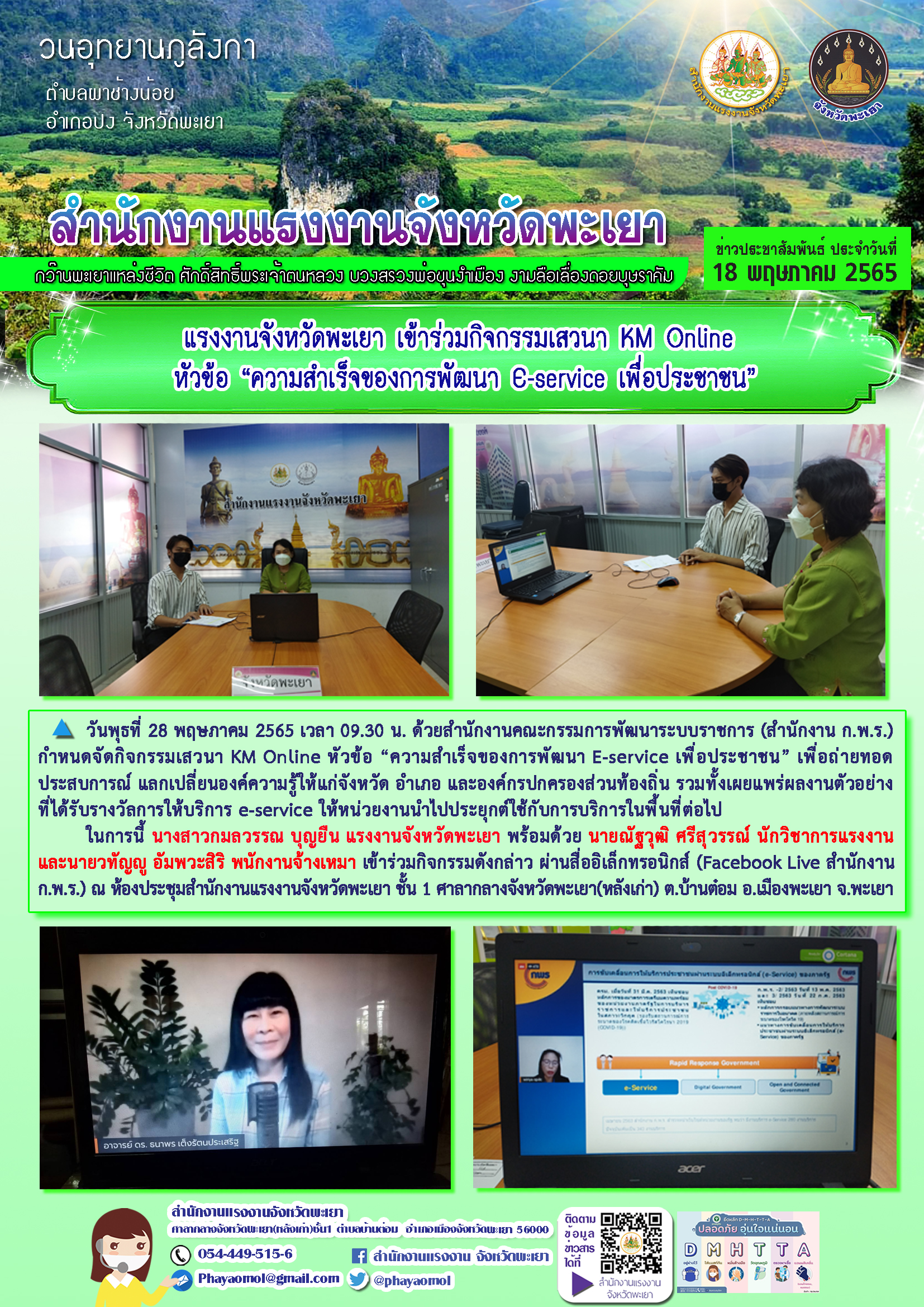 แรงงานจังหวัดพะเยา เข้าร่วมกิจกรรมเสวนา KM Online หัวข้อ “ความสำเร็จของการพัฒนา E-service เพื่อประชาชน”