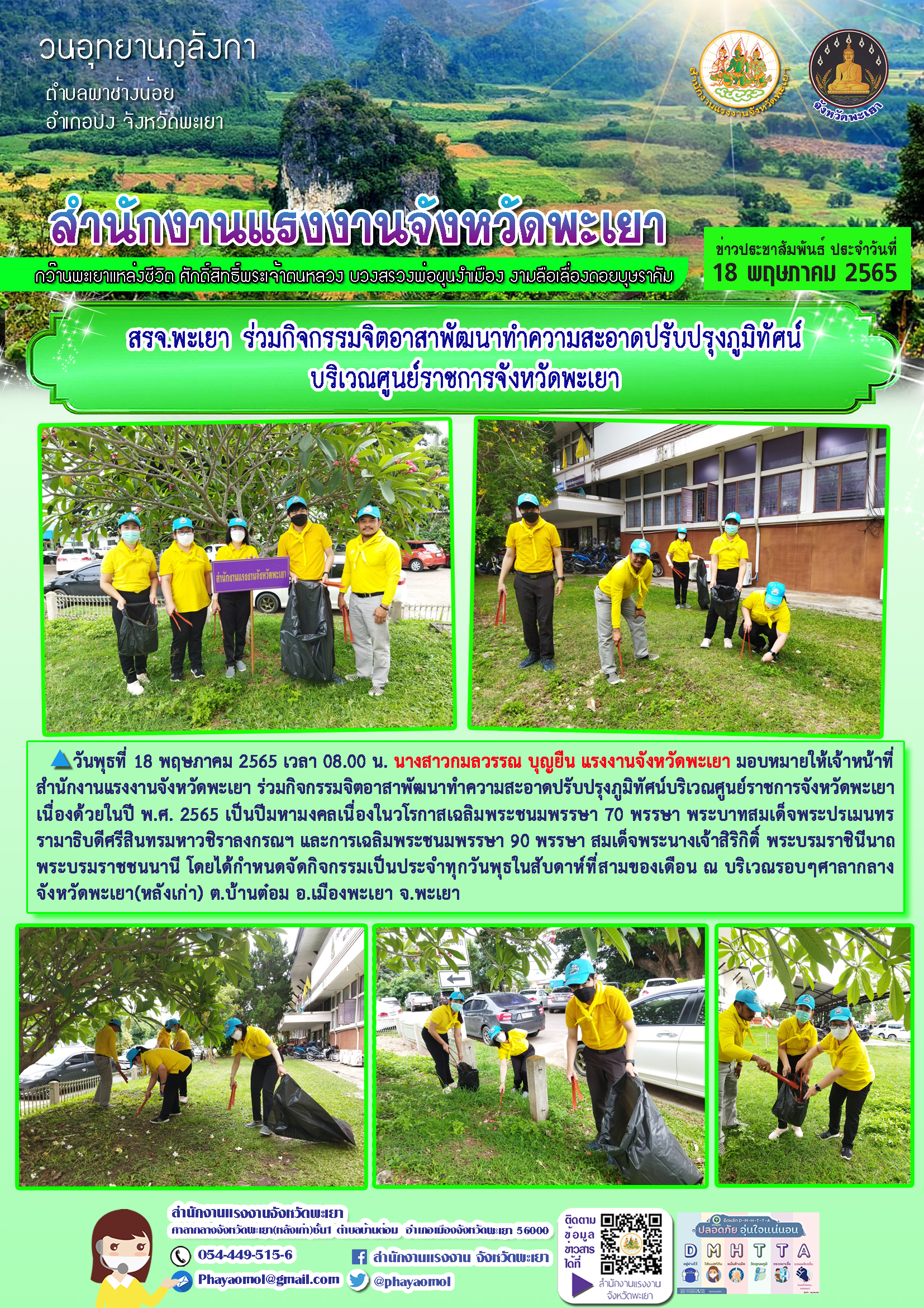 สรจ.พะเยา ร่วมกิจกรรมจิตอาสาพัฒนาทำความสะอาดปรับปรุงภูมิทัศน์บริเวณศูนย์ราชการจังหวัดพะเยา