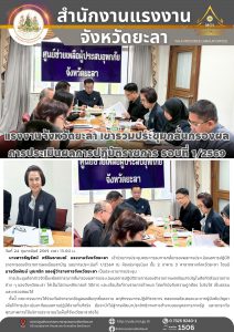 แรงงานจังหวัดยะลา ร่วมประชุมคณะอนุกรรมการ ประกันสังคมจังหวัดยะลา ครั้งที่ 1/2569