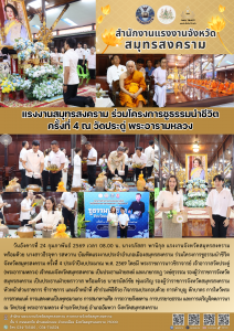แรงงานสมุทรสงคราม ร่วมโครงการชูธรรมนำชีวิต ครั้งที่ 4 ณ วัดประดู่ พระอารามหลวง