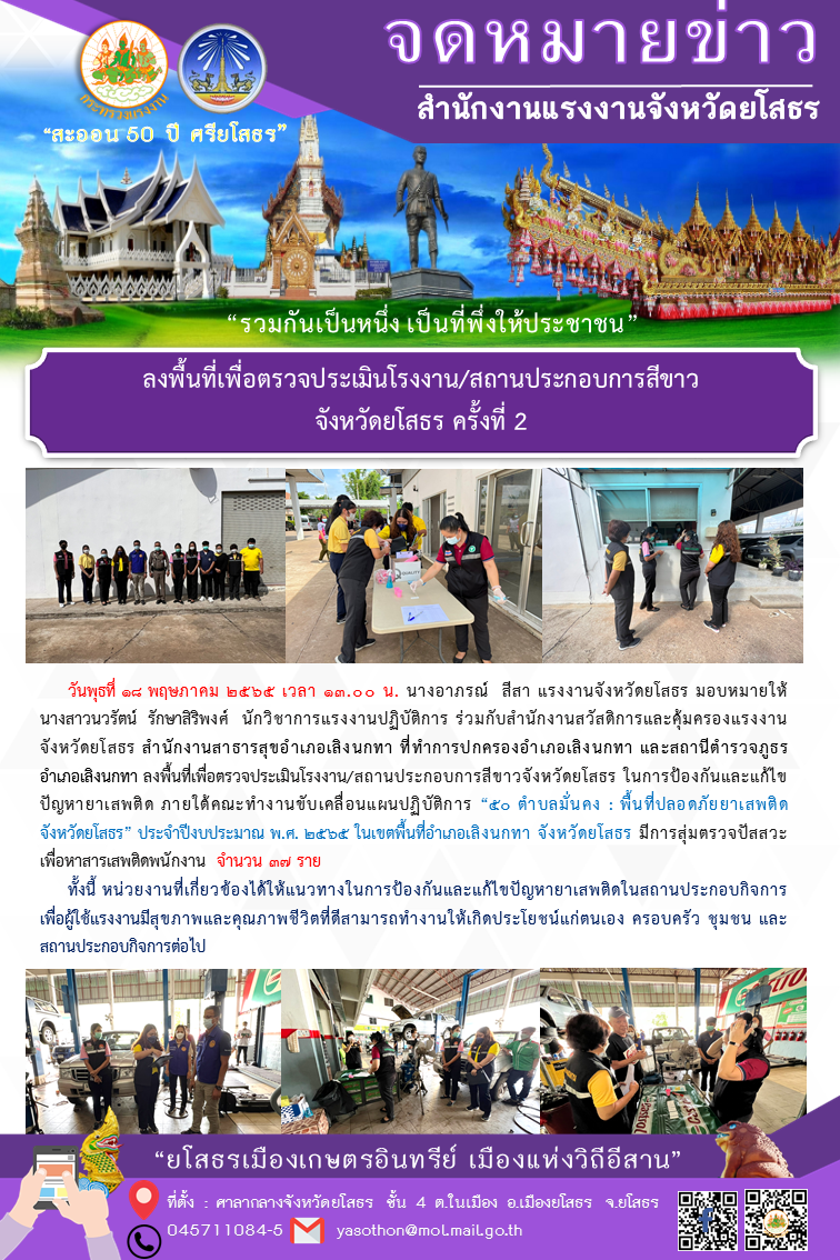 ศูนย์ปฏิบัติการป้องกันการค้ามนุษย์ด้านแรงงานจังหวัดพระนครศรีอยุธยาออกตรวจบูรณาการสถานประกอบการ กลุ่มเสี่ยงตามแผนปฏิบัติการป้องกันการบังคับใช้แรงงานหรือบริการ และการค้ามนุษย์ด้านแรงงาน จังหวัดพระนครศรีอยุธยา ประจำปีงบประมาณ พ.ศ. 2565
