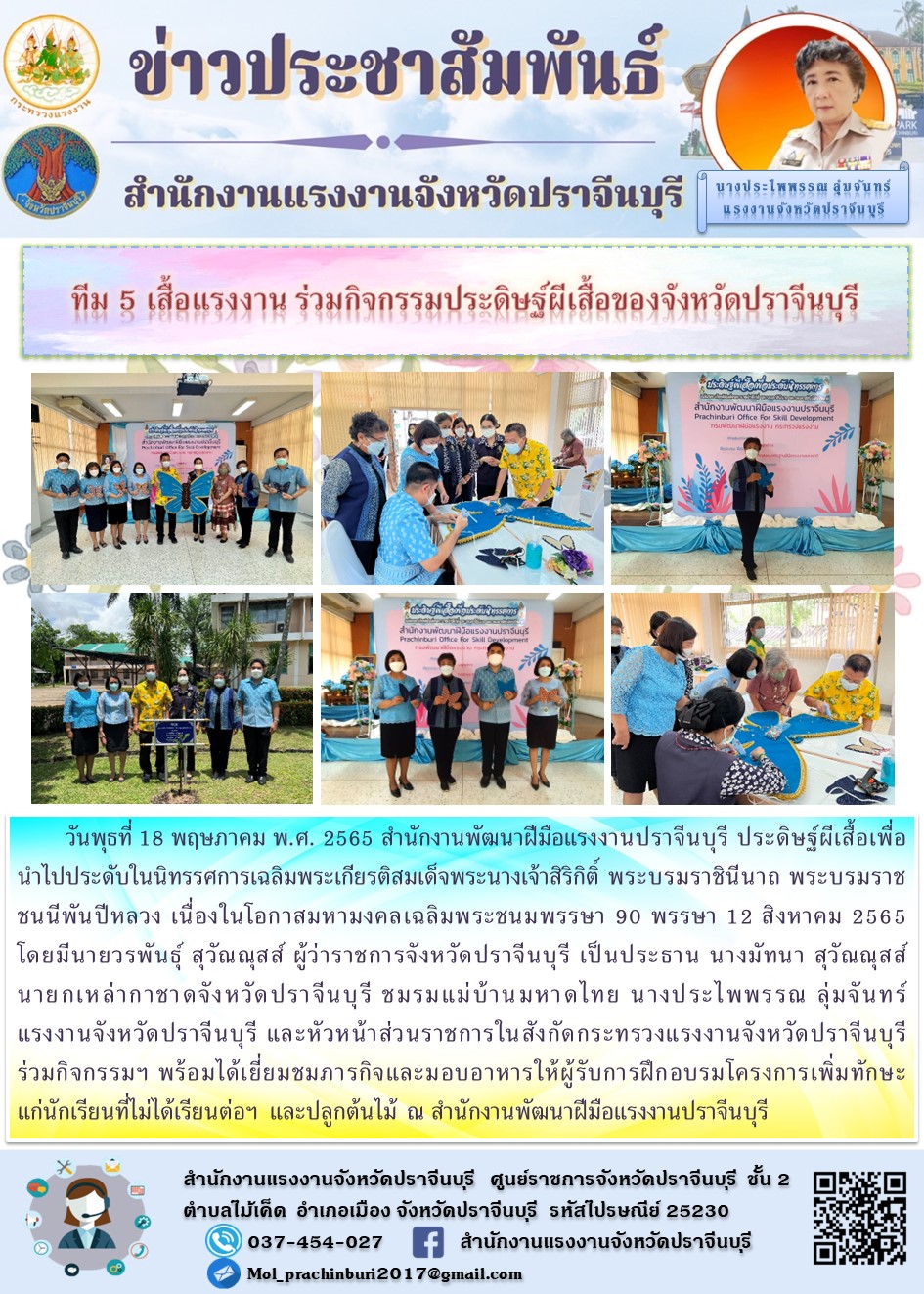แรงงานจังหวัดปราจีนบุรี ร่วมกิจกรรมประดิษฐ์ผีเสื้อเพื่อนำไปประดับในนิทรรศการเฉลิมพระเกียรติสมเด็จพระนางเจ้าสิริกิติ์ พระบรมราชินีนาถ พระบรมราชชนนีพันปีหลวง