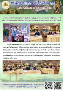 แรงงานจังหวัดตาก มอบหมายเจ้าหน้าที่ เข้าร่วมอบรมโครงการส่งเสริมการรับรู้ให้กับนายจ้าง สถานประกอบการ แรงงานต่างด้าว และองค์กรภาคีเครือข่าย ประจำปีงบประมาณ พ.ศ. 2565