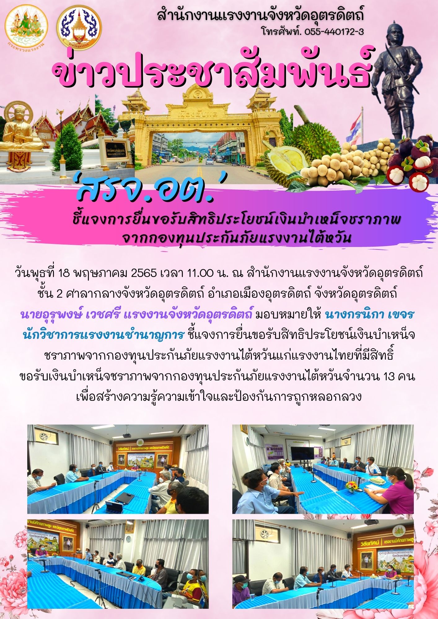 ‘สรจ.อต.’ ชี้แจงการยื่นขอรับสิทธิประโยชน์เงินบำเหน็จชราภาพจากกองทุนประกันภัยแรงงานไต้หวัน
