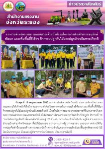แรงงานจังหวัดระยอง มอบหมายเจ้าหน้าที่ร่วมโครงการส่งเสริมการอนุรักษ์ พัฒนา และเพิ่มพื้นที่สีเขียว กิจกรรมปลูกต้นไม้และปลูกป่าเฉลิมพระเกียรติ