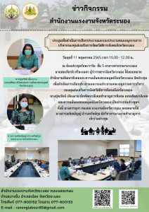แรงงานจังหวัดระยอง ร่วมประชุมชี้แจงแผนปฏิบัติการว่าด้วยกลไกส่งต่อระดับชาติ การบริหารจัดการคดี และการช่วยเหลือคุ้มครองผู้เสียหายจากการค้ามนุษย์ และการบังคับใช้แรงงานหรือบริการ พ.ศ. 2565