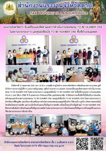 แรงงานจังหวัดตาก ขับเคลื่อนและติดตามผลการดำเนินงานของชมรม TO BE NUMBER ONE ในสถานประกอบการ และศูนย์เพื่อนใจ TO BE NUMBER ONE พื้นที่อำเภอแม่สอด