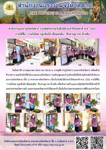 สำนักงานแรงงานจังหวัดตาก ร่วมจัดกิจกรรมวันต้นไม้ประจำปีของชาติ พ.ศ. 2565 ภายใต้ชื่อ “รวมใจไทย ปลูกต้นไม้ เพื่อแผ่นดิน” สืบสานสู่ 100 ล้านต้น