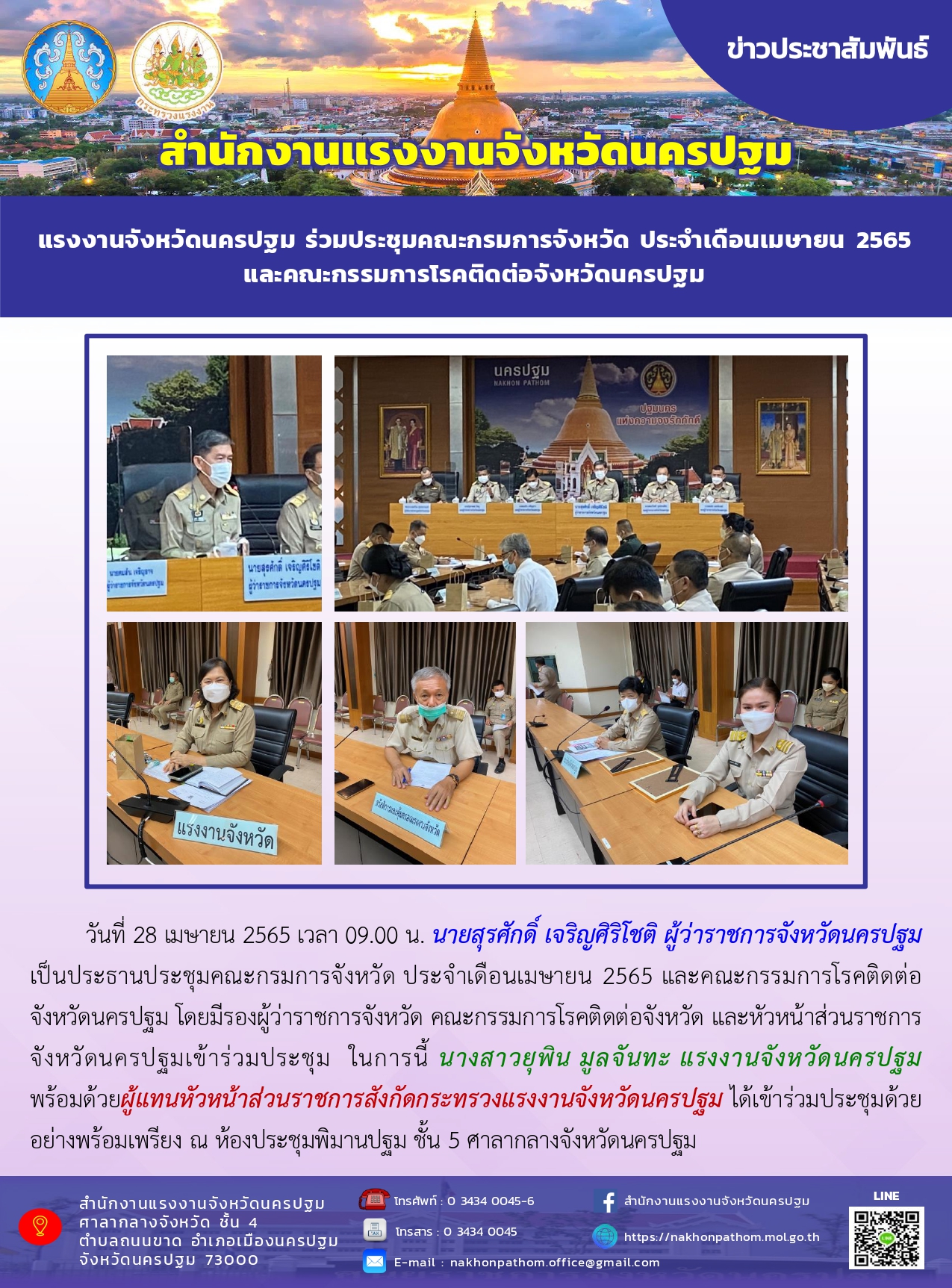 แรงงานจังหวัดนครปฐม ร่วมประชุมคณะกรมการจังหวัด ประจำเดือนเมษายน 2565 และคณะกรรมการโรคติดต่อจังหวัดนครปฐม