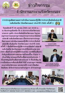 สรจ.ระนอง เข้าร่วมการประชุมติดตามผลการดำเนินงานแผนปฏิบัติการประชาสัมพันธ์แห่งชาติ ระดับจังหวัด (จังหวัดระนอง) ประจำปี 2565 ครั้งที่ 3