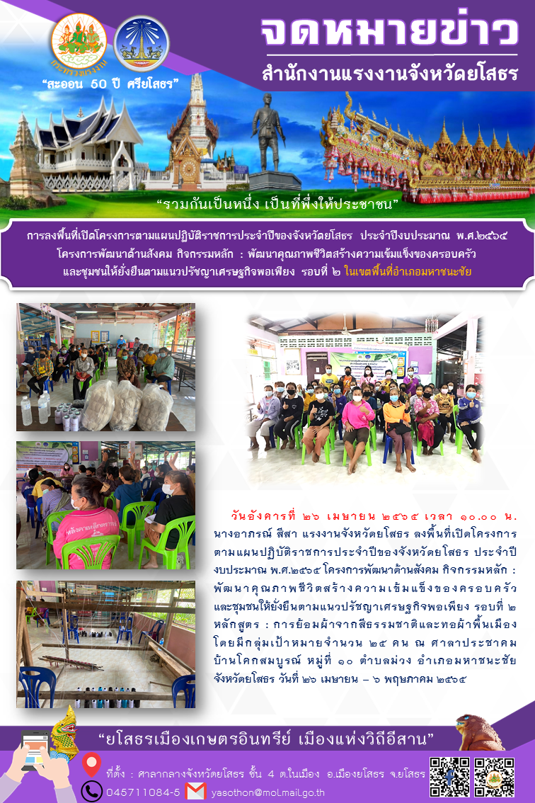 สรจ.ยโสธร ลงพื้นที่เปิดโครงการตามแผนปฏิบัติราชการประจำปีของจังหวัดยโสธร ประจำปีงบประมาณ พ.ศ.2565